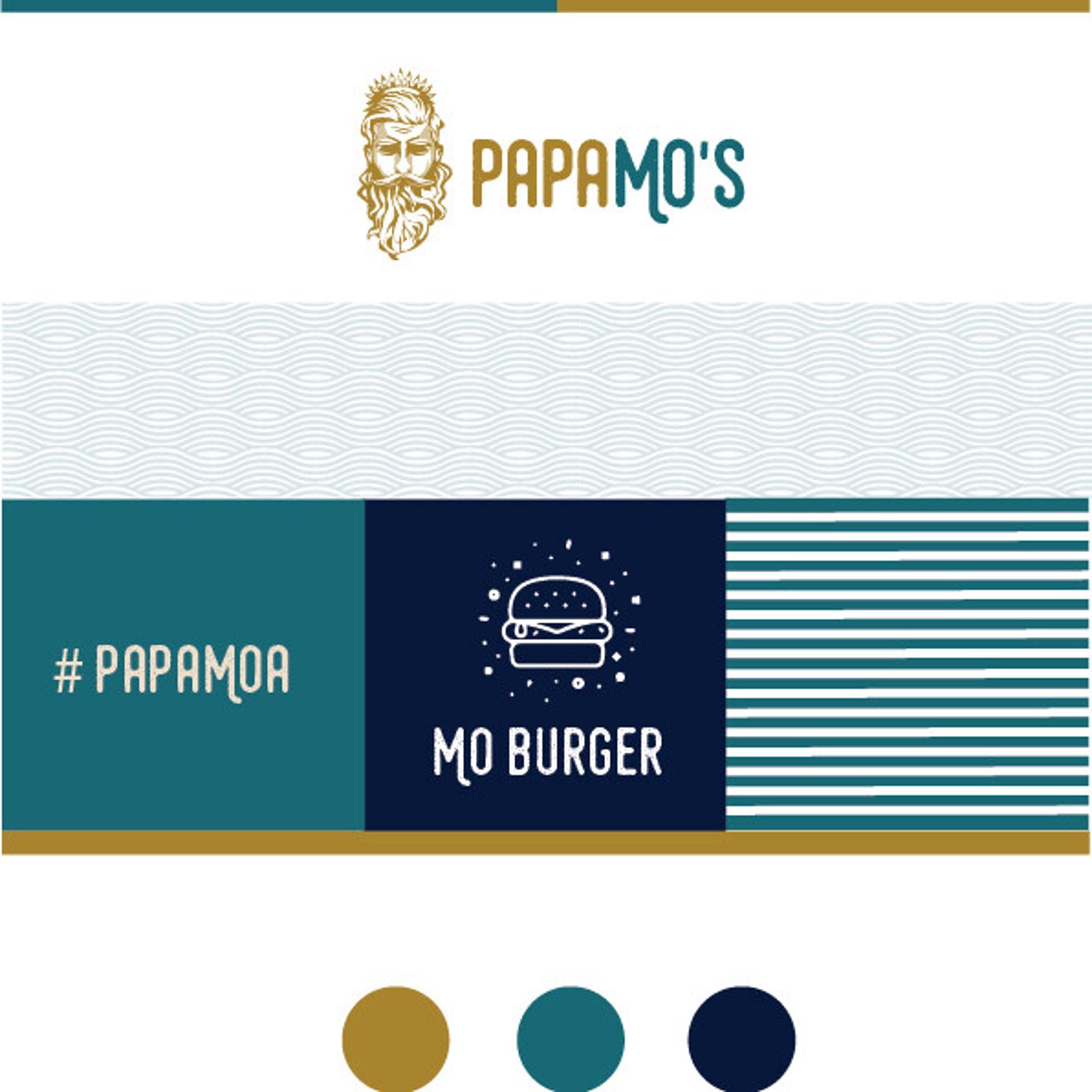 This project was worked on in collaboration with the Marketing Team at hgb. As the senior designer my role was to bring to life the Papa Mo brand personality. The owners told our team at HGB they wanted a brand with personality, that would be the face for the business and they wanted the new establishment to belong to the community. We thought – who better to preside over a beachside restaurant, while acting as a face for the business, than Neptune, God of the Sea? And so, Papa Mo’s was born – a serious but fun brand.
